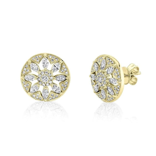 14K Gold 0.57 CT Marquise Diamond Stud Earrings Circle Disc Pushback Round Cut