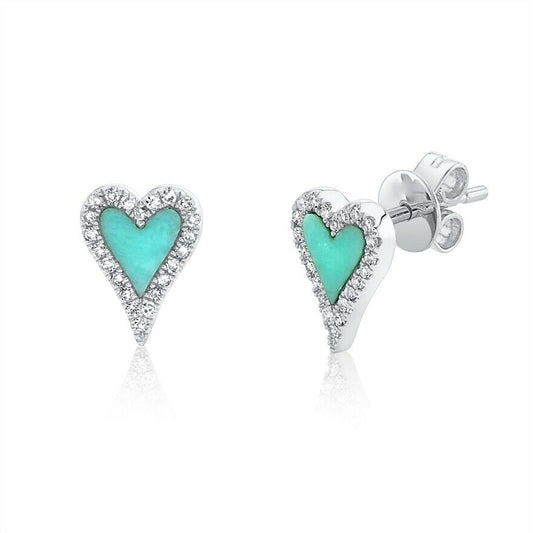 14K Gold 0.49 TCW Turquoise Diamond Heart Stud Earrings Love Natural