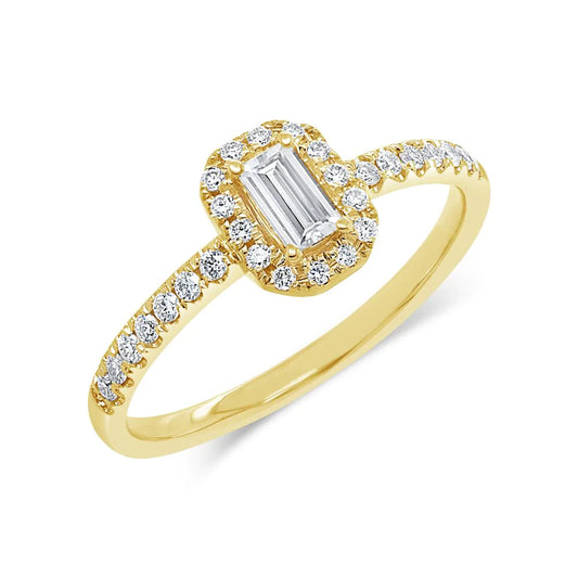 14K Gold 0.38CT Baguette Diamond Engagement Ring Solitaire Halo Certified