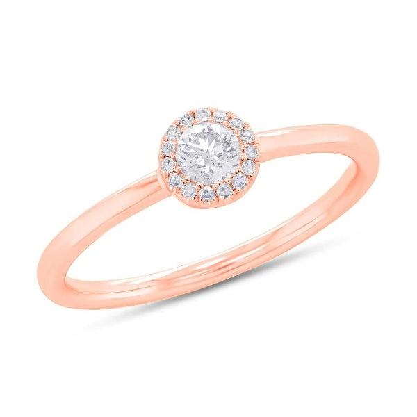 14K Gold 0.25 TCW Natural Round Cut Diamond Halo Solitaire Cocktail Ring