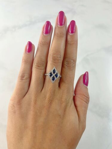 14K gold with 1.09-carat diamond sapphire marquise cocktail ring