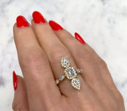 14K gold with 1.46-carat natural pear-cut diamond emerald marquise ring