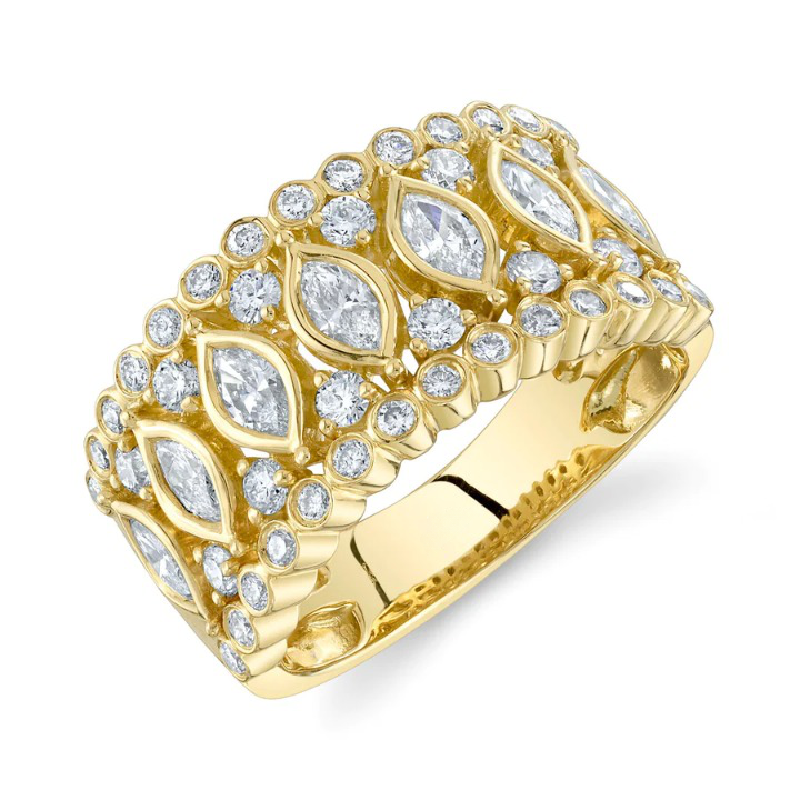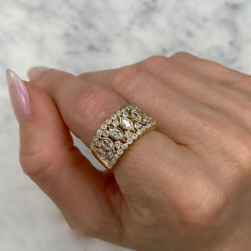 14K gold with 1.38-carat natural diamond marquise bezel women's ring.