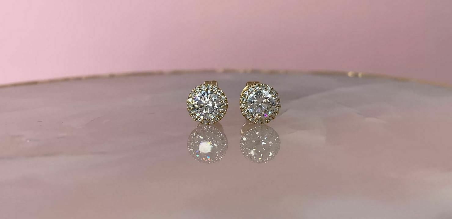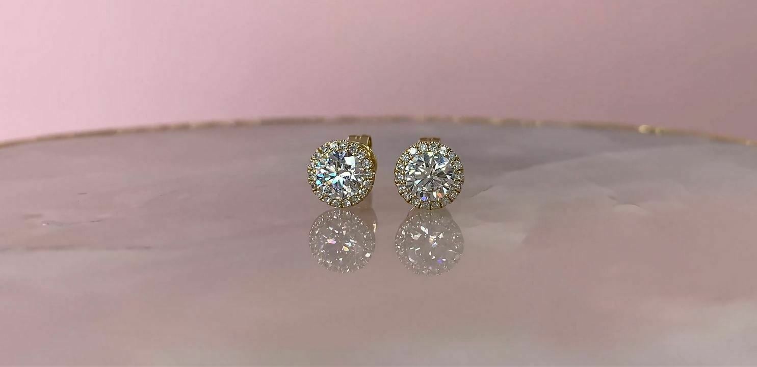 14K Gold 0.90 TCW Diamond Stud Earrings Halo Round Cut Natural Certified