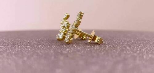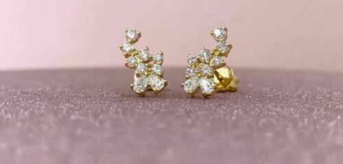 14K Gold 0.70 CT Pear Round Cut Diamond Stud Ear Crawler Earrings Natural