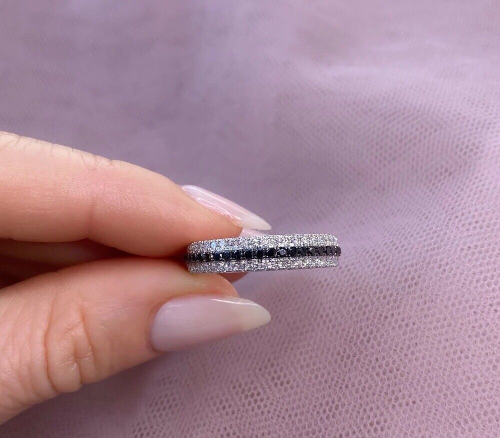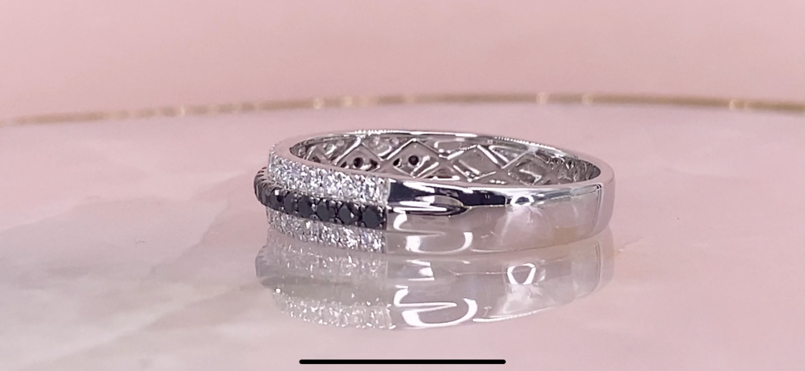 Men’s 14K Gold Black And White Diamond Band Ring Natural Round 0.72 CT