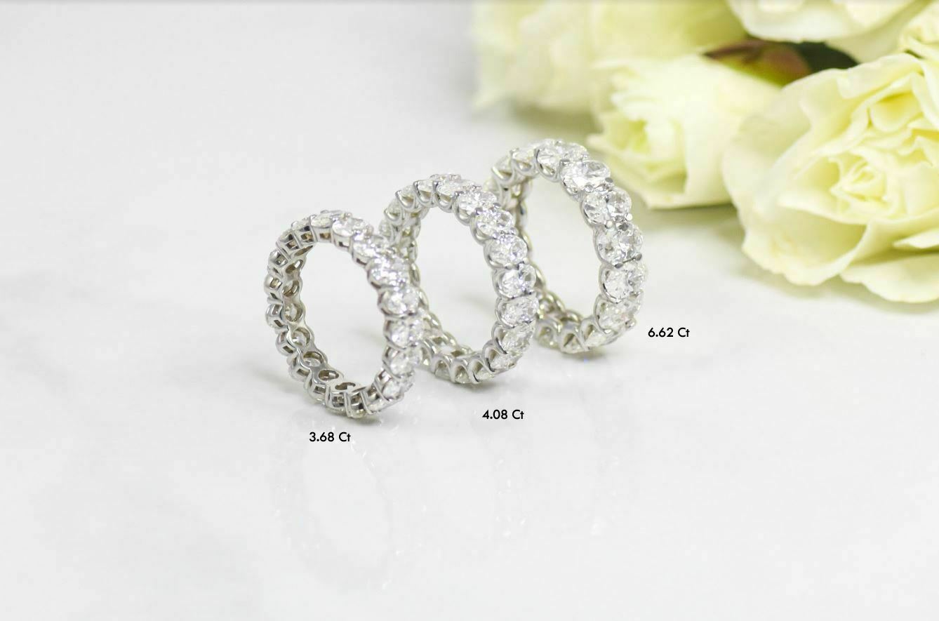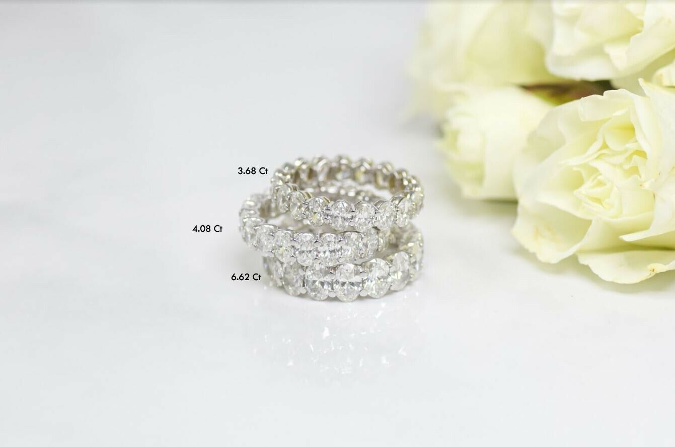 18K white gold with 4.08-carat diamond oval cut eternity ring.