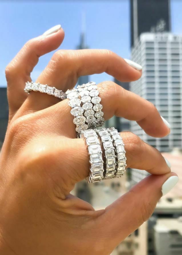 18K White Gold 4.08 CT Oval Diamond Eternity Ring Band Engagement Wedding Natural