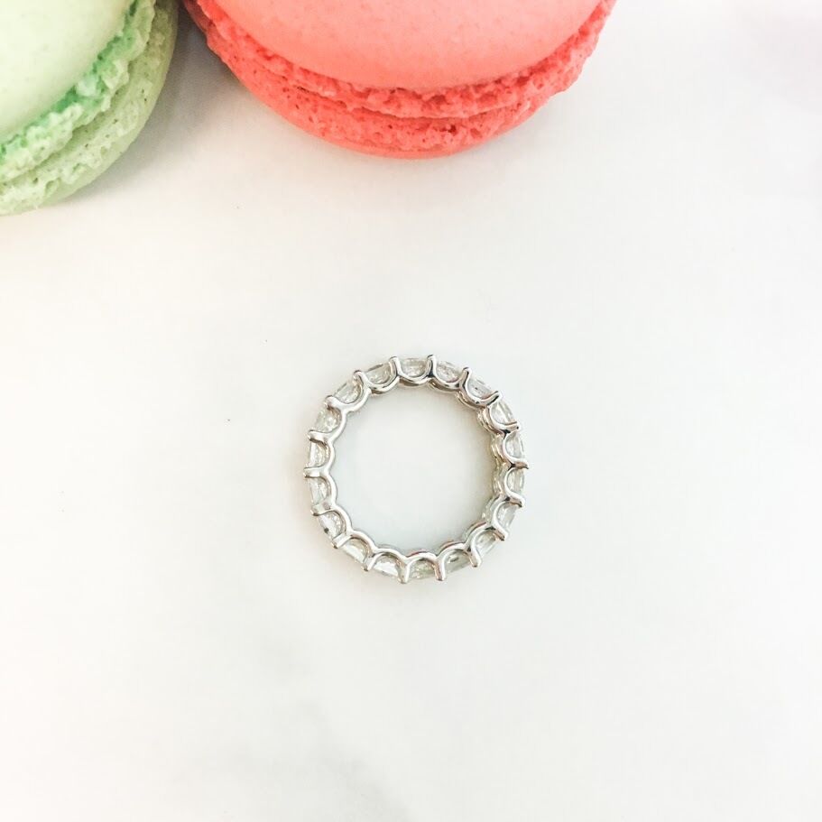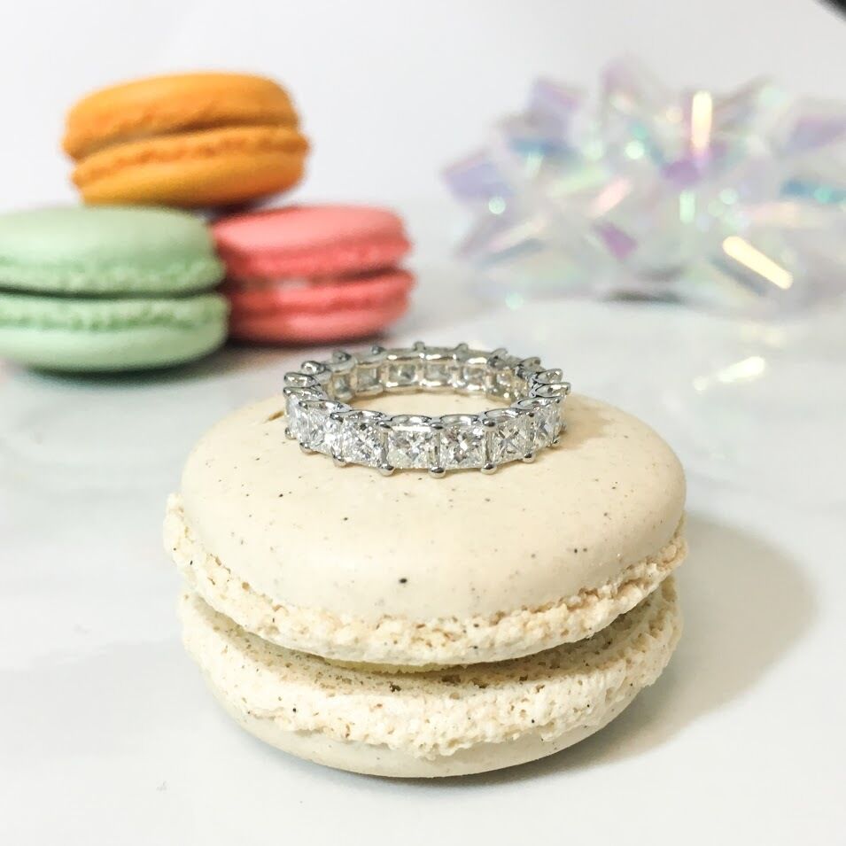 18K white gold with a 2.47-carat diamond princess eternity ring.